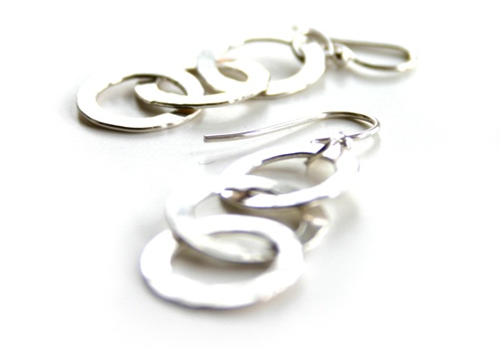 These delicate chain earrings go with everything, and are small enough for those who don’t usually wear dangly earrings. A matching necklace and bracelet are available.